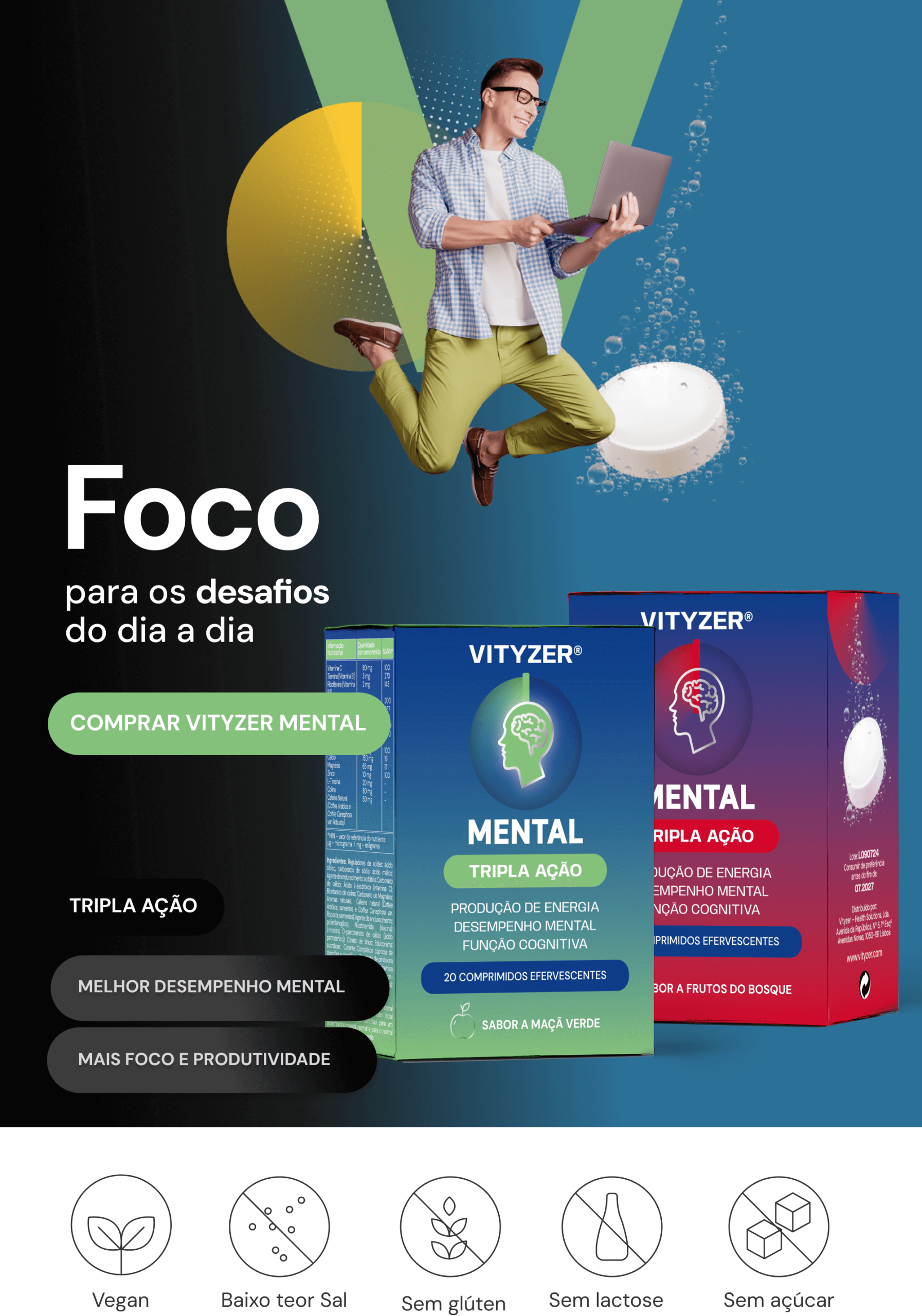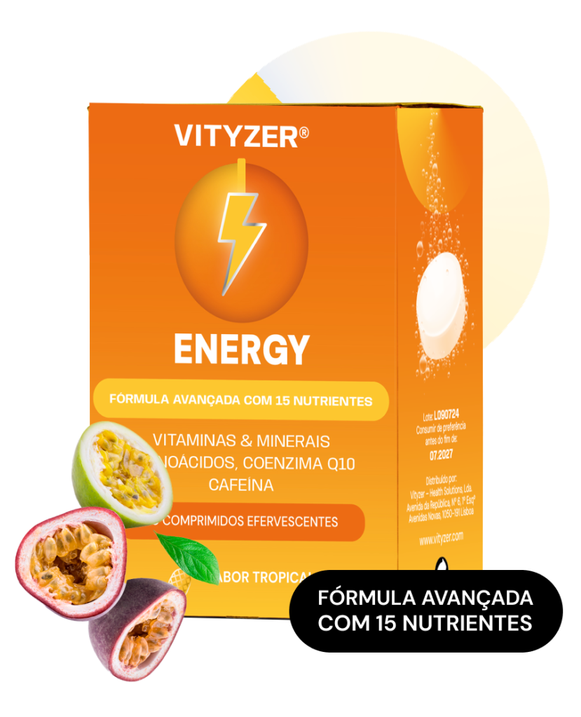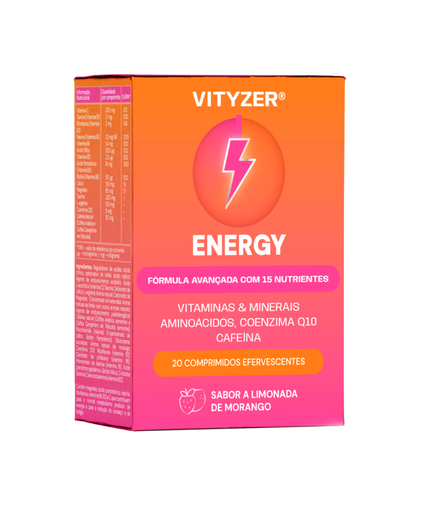 Os produtos da marca Vityzer® são SUPLEMENTOS ALIMENTARES. Não devem ser utilizados como substitutos de um regime alimentar variado, equilibrado e de um modo de vida saudável. Contêm vitamina C que contribui para o normal metabolismo produtor de energia e para a redução do cansaço e da fadiga. Manter fora da vista e do alcance das crianças. Não exceder a toma diária recomendada.